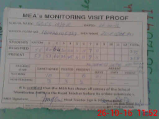 | Certified that this School was Inspected by the Undersigned MEA/DMO Today and the Information Stated Above is as Per Record. | |||||