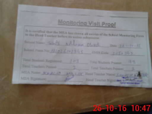 | Certified that this School was Inspected by the Undersigned MEA/DMO Today and the Information Stated Above is as Per Record. | |||||