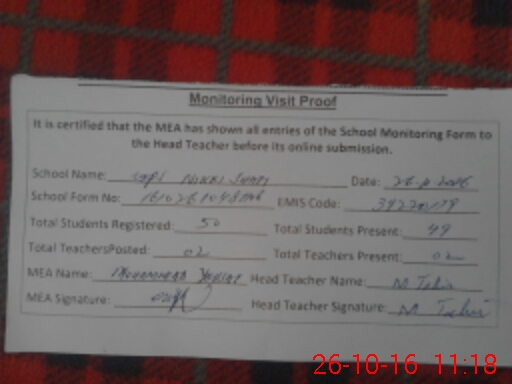 | Certified that this School was Inspected by the Undersigned MEA/DMO Today and the Information Stated Above is as Per Record. | |||||