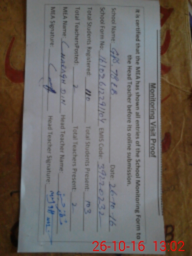 | Certified that this School was Inspected by the Undersigned MEA/DMO Today and the Information Stated Above is as Per Record. | |||||