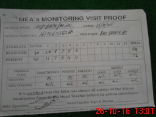 | Certified that this School was Inspected by the Undersigned MEA/DMO Today and the Information Stated Above is as Per Record. | |||||