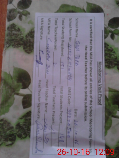 | Certified that this School was Inspected by the Undersigned MEA/DMO Today and the Information Stated Above is as Per Record. | |||||