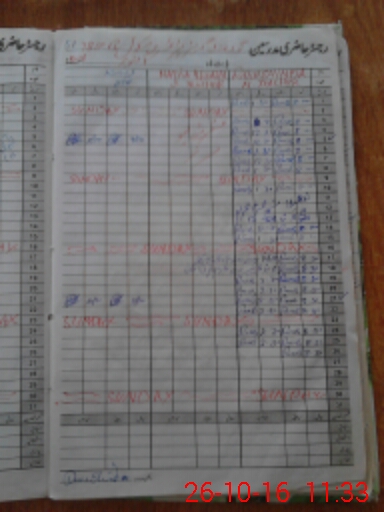 | CNIC | Full Name | Designation | R/C | Absence During Last Calender Month |