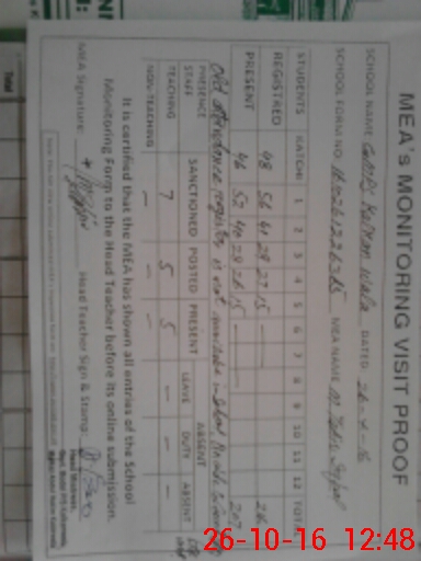 | Monitoring Date: 26-10-2016 | Start Time: 26-10-2016 12:26 PM | End Time: 26-10-2016 12:54 PM | Name of MEA: M.Ta**** Iq**** (S**** | |