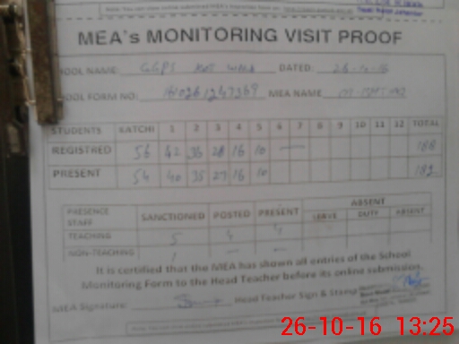 | Attendance Register | Head Teacher | MEA with School | Visit Proof |