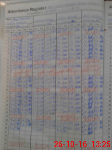 | CNIC | Full Name | Designation | R/C | Absence During Last Calender Month |