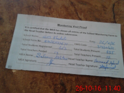 | Certified that this School was Inspected by the Undersigned MEA/DMO Today and the Information Stated Above is as Per Record. | |||||