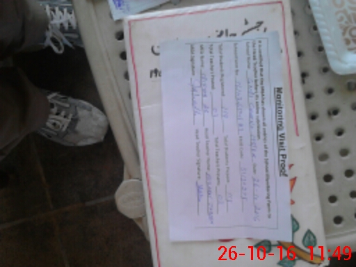 | Monitoring Date: 26-10-2016 | Start Time: 26-10-2016 11:24 AM | End Time: 26-10-2016 12:15 PM | Name of MEA: Ir**** Al**** BN**** 07 | |