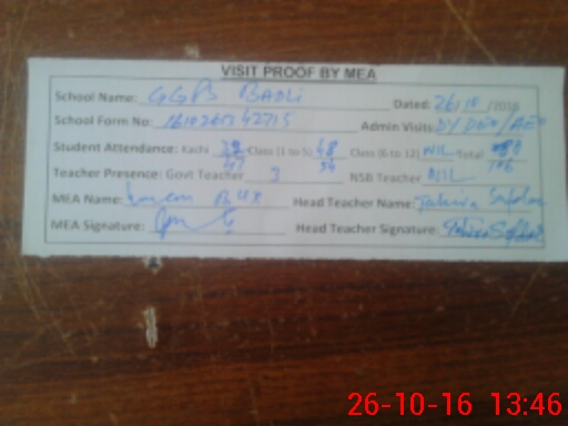 | EMIS Code: 32430162 | Name of School: GGPS BADLI | |||