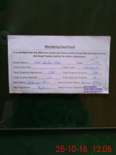 | Certified that this School was Inspected by the Undersigned MEA/DMO Today and the Information Stated Above is as Per Record. | |||||