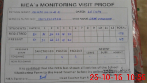 | Certified that this School was Inspected by the Undersigned MEA/DMO Today and the Information Stated Above is as Per Record. | |||||