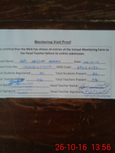 | Certified that this School was Inspected by the Undersigned MEA/DMO Today and the Information Stated Above is as Per Record. | |||||