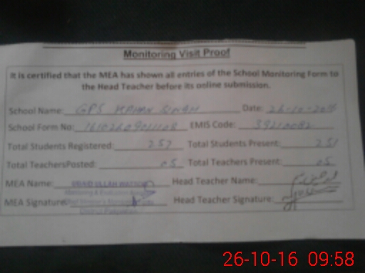 | Certified that this School was Inspected by the Undersigned MEA/DMO Today and the Information Stated Above is as Per Record. | |||||
