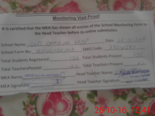 | Certified that this School was Inspected by the Undersigned MEA/DMO Today and the Information Stated Above is as Per Record. | |||||