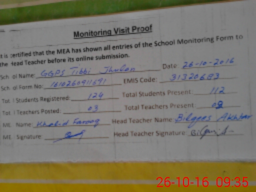 | EMIS Code: 31320683 | Name of School: GGPS TIBBI JHULLAN | |||