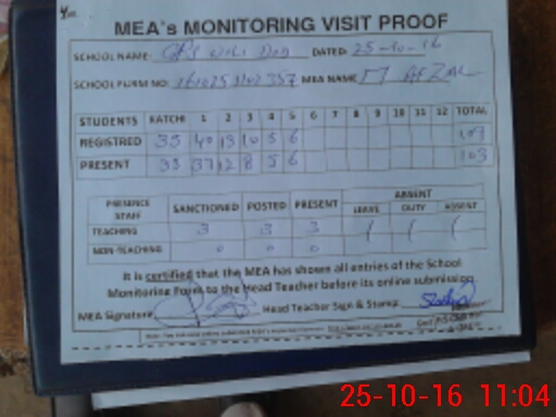 | Attendance Register | Head Teacher | MEA with School | Visit Proof |