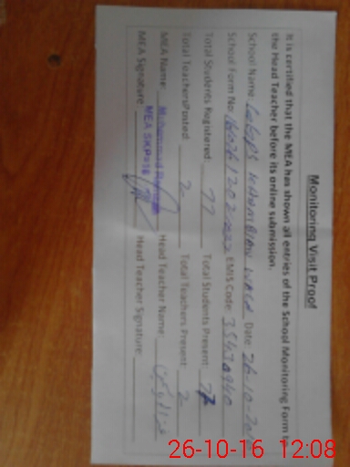 | Attendance Register | Head Teacher | MEA with School | Visit Proof |