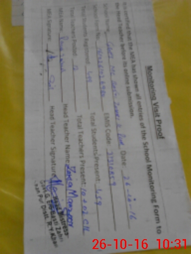 | Monitoring Date: 26-10-2016 | Start Time: 26-10-2016 09:31 AM | End Time: 26-10-2016 10:32 AM | Name of MEA: Mu**** Za**** -KP**** | |