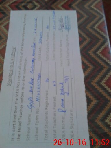 | Attendance Register | Head Teacher | MEA with School | Visit Proof |