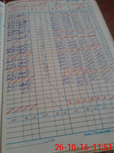 | CNIC | Full Name | Designation | R/C | Absence During Last Calender Month |