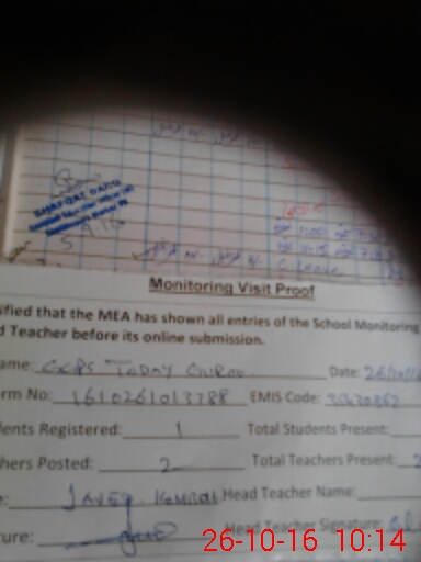 | Attendance Register | Head Teacher | MEA with School | Visit Proof |