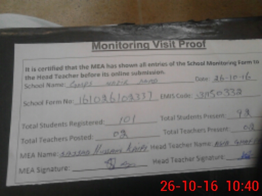 | Certified that this School was Inspected by the Undersigned MEA/DMO Today and the Information Stated Above is as Per Record. | |||||