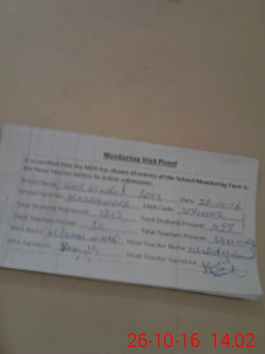 | Attendance Register | Head Teacher | MEA with School | Visit Proof |