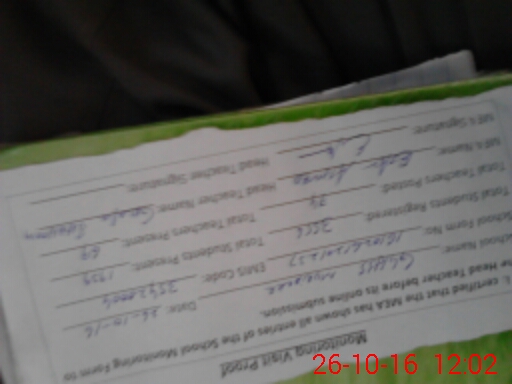 | Monitoring Date: 26-10-2016 | Start Time: 26-10-2016 11:16 AM | End Time: 26-10-2016 12:08 PM | Name of MEA: Ej**** Ah**** Kh**** (R**** | |