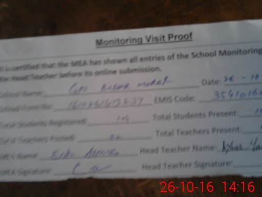 | Attendance Register | Head Teacher | MEA with School | Visit Proof |