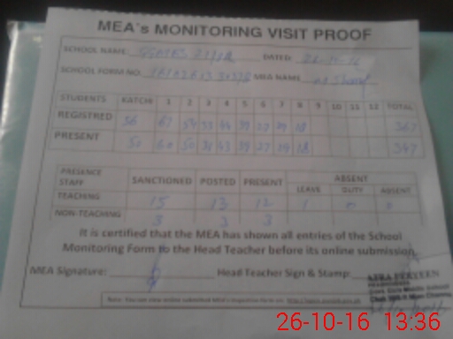 | Attendance Register | Head Teacher | MEA with School | Visit Proof |