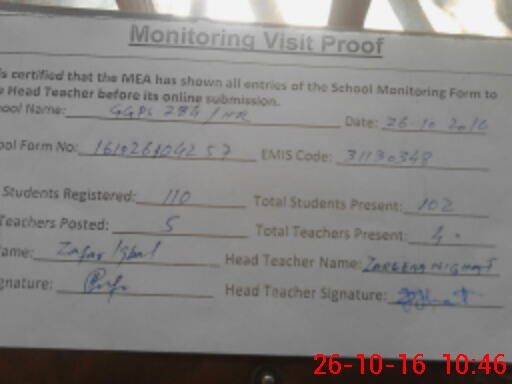 | EMIS Code: 31130348 | Name of School: GGPS CHAK NO 284 HR | |||