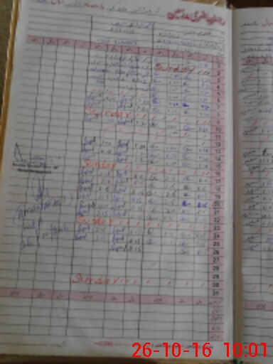 | CNIC | Full Name | Designation | R/C | Absence During Last Calender Month |