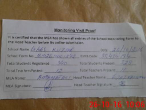 | Attendance Register | Head Teacher | MEA with School | Visit Proof |