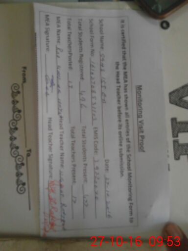 | Certified that this School was Inspected by the Undersigned MEA/DMO Today and the Information Stated Above is as Per Record. | |||||