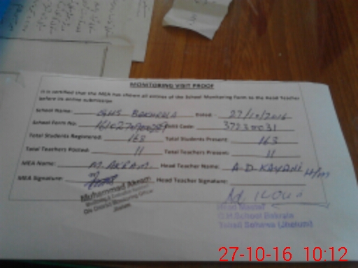 | Certified that this School was Inspected by the Undersigned MEA/DMO Today and the Information Stated Above is as Per Record. | |||||