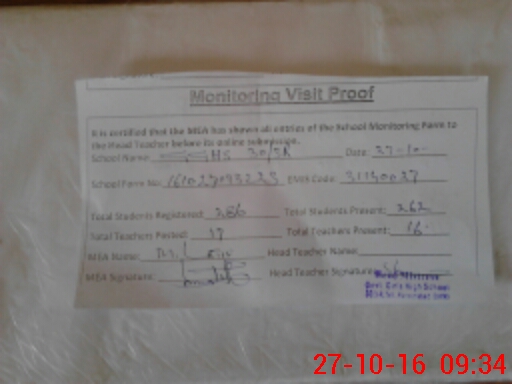 | Attendance Register | Head Teacher | MEA with School | Visit Proof |