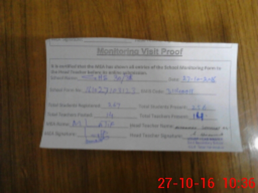 | Attendance Register | Head Teacher | MEA with School | Visit Proof |