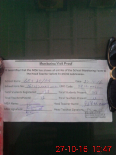 | Attendance Register | Head Teacher | MEA with School | Visit Proof |