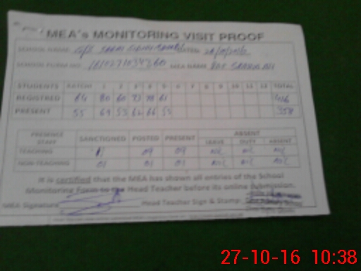 | Certified that this School was Inspected by the Undersigned MEA/DMO Today and the Information Stated Above is as Per Record. | |||||