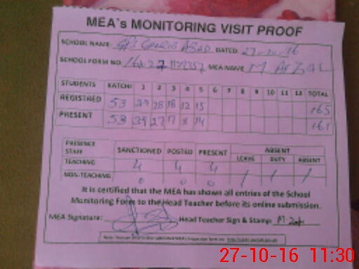 | Attendance Register | Head Teacher | MEA with School | Visit Proof |