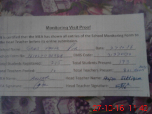 | Attendance Register | Head Teacher | MEA with School | Visit Proof |