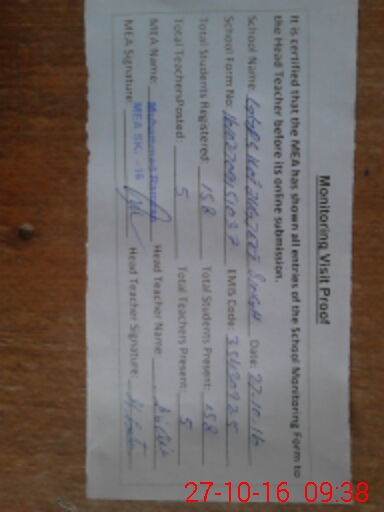 | Certified that this School was Inspected by the Undersigned MEA/DMO Today and the Information Stated Above is as Per Record. | |||||