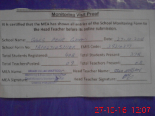 | EMIS Code: 39210377 | Name of School: GGES PIR GHANI | |||