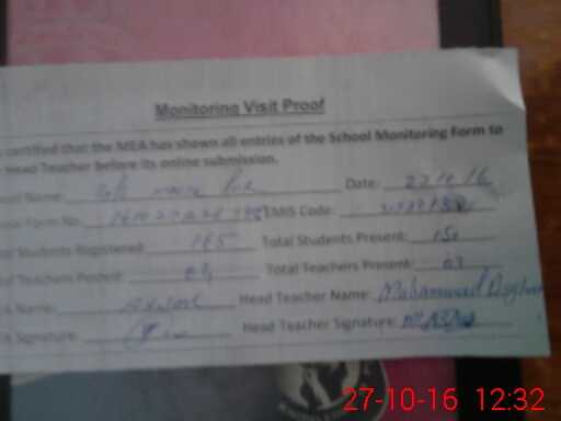 | Certified that this School was Inspected by the Undersigned MEA/DMO Today and the Information Stated Above is as Per Record. | |||||