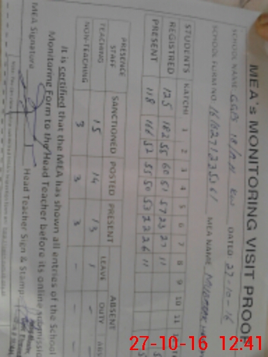 | Certified that this School was Inspected by the Undersigned MEA/DMO Today and the Information Stated Above is as Per Record. | |||||
