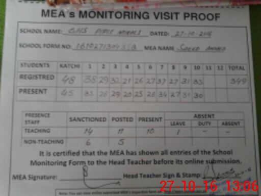 | Attendance Register | Head Teacher | MEA with School | Visit Proof |