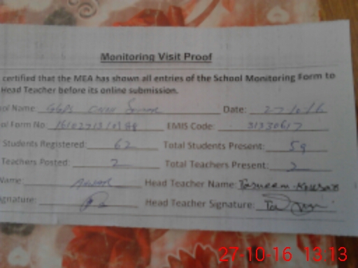 | Certified that this School was Inspected by the Undersigned MEA/DMO Today and the Information Stated Above is as Per Record. | |||||
