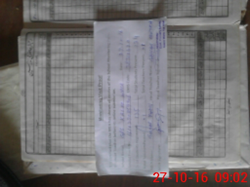 | Monitoring Date: 27-10-2016 | Start Time: 27-10-2016 08:49 AM | End Time: 27-10-2016 09:05 AM | Name of MEA: Gu**** Hu**** Kh**** | |