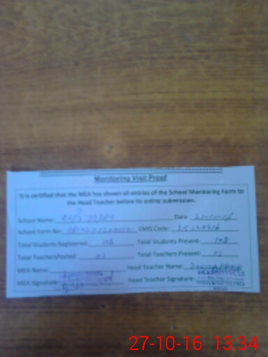 | Certified that this School was Inspected by the Undersigned MEA/DMO Today and the Information Stated Above is as Per Record. | |||||