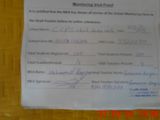 | Attendance Register | Head Teacher | MEA with School | Visit Proof |